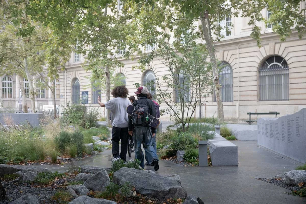 The 13th november garden is located in the heart of Paris, its historic core. It is not situated on one of the sites attacked on November 13, 2015. Rather, it stands apart—both as another place and as a spatial synthesis of the six locations targeted that night. These six sites are gathered here, brought into dialogue within a single space.